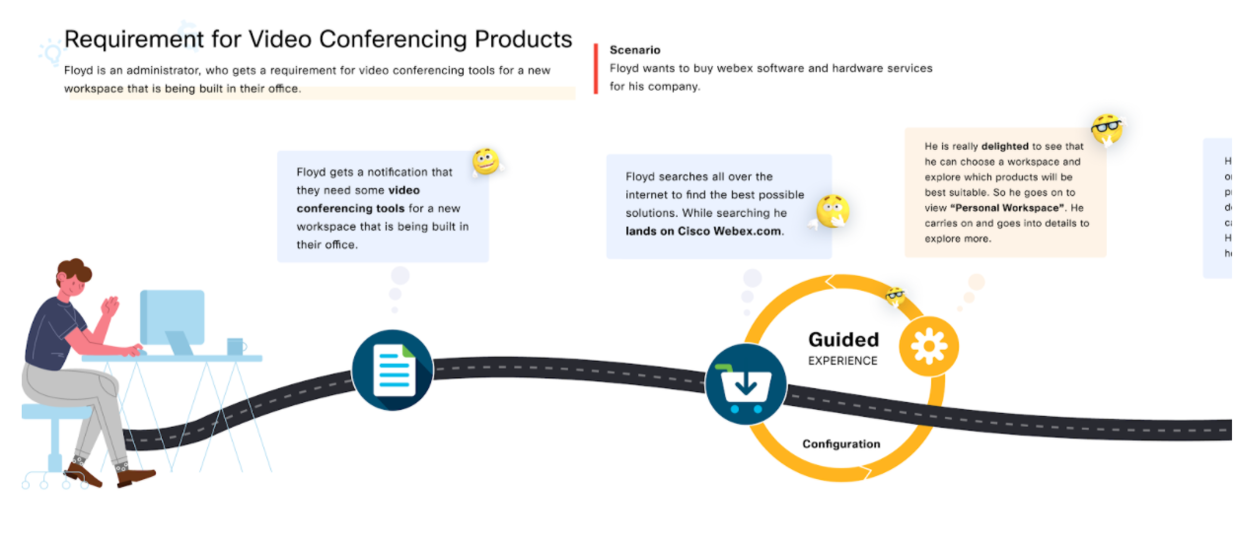Experience Mapping is used for visualization of an entire end to end experience that a person goes through in order to accomplish a goal. It follows a chronological order and is not tied to a specific product or service. Experience maps generalize the concept of customer-journey maps across user types and products.